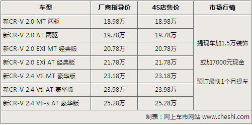 筆者從經(jīng)銷店了解,目前CR-V仍需要加價購車,提現(xiàn)車需要加7000元現(xiàn)金或者加裝1.5萬元的裝飾,裝飾項目包括了腳墊、尾翼、行李架、踏板等。消費者可根據(jù)需求選購,目前2.0和2.4自動檔有黑色、銀色現(xiàn)車供應,但顏色不齊全,訂車的話訂金為1-2萬元,最快1個月可以提到車。