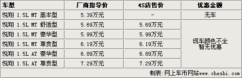 據(jù)長安汽車4S店銷售人員介紹,悅翔目前只有五款車型有現(xiàn)車銷售,其中包括三款手動檔車型和兩款自動檔車型。售價(jià)5.39萬元的悅翔手動基本型一直就沒有現(xiàn)車銷售,屬于有價(jià)無車的狀態(tài)。其他車型雖然有現(xiàn)車,但個別顏色仍需要預(yù)訂。長安汽車4S店銷售人員表示,目前購買悅翔并沒有任何優(yōu)惠政策。
