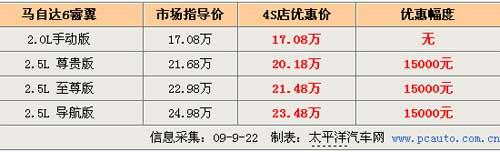 由于宣傳周期過長貨源一直緊缺,睿翼上市后并沒有達到廠家的銷量任務,雖然睿翼定價偏低依舊不能得到消費者認可。目前馬自達6睿翼可優(yōu)惠15000元,并且還可贈送相當可觀的大禮包,現(xiàn)車較為充足。作為馬自達6的升級換代產品,其在北方市場的銷售一直比較平淡,此次降價也是為了更好的迎合市場。馬自達6睿翼安全和舒適性配置比較突出,雙開啟模式電動天窗、方向盤換擋撥片、雙區(qū)獨立控制自動空調系統(tǒng)、6安全氣囊等等,這些都是睿翼的標配,作為一款中高級轎車這樣的配置與同級別車相比還是很有優(yōu)勢的。另外睿翼采用了輕量化車身的設計,整車重量有所減少,在節(jié)油方面功效顯著。