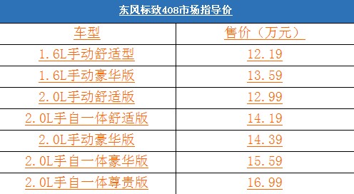 1月25日,東風(fēng)標(biāo)致408在北京全球首發(fā)上市,共推出1.6L和2.0L排量7款車型,售價(jià)12.19-16.99萬元。這是標(biāo)致汽車品牌創(chuàng)立120年以來,首次在海外市場(chǎng)全球首發(fā)其最新一代車型。這不僅顯示出中國(guó)市場(chǎng)日漸提升的重要地位,更凸顯標(biāo)致汽車乃至PSA標(biāo)致雪鐵龍集團(tuán)的中國(guó)戰(zhàn)略重心的進(jìn)一步確立。具體售價(jià)如下表: