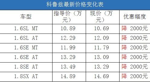 近日,編輯從北京地區(qū)綜合經(jīng)銷商處了解到,科魯茲有少量紅色、銀色和白色現(xiàn)車,購車全系可以優(yōu)惠2000元現(xiàn)金,這對于該車一直價格穩(wěn)定車源緊張的情況而言非常令人驚喜。據(jù)經(jīng)銷商透露,消費者要想以這個價格提車,需要在店內(nèi)做購車一條龍服務(wù),其中車輛四項基本保險可以打8.8折(約合4000-5000元左右)。以下是科魯茲最新價格變化表:
