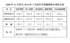 通過與2009年12月份的數(shù)據(jù)對比發(fā)現(xiàn)(見左圖),就業(yè)前景與儲蓄預期與上月相比略有上升,但幅度很小。第一個月居民對經濟形勢的預期要比去年12月份略低28.2,說明居民對經濟前景表明了一種較為謹慎的樂觀,尤其是進入一月份以來,宏觀政策再次調控房價,這對于很多人的經濟預期或多或少都有影響。但從總體來看,前后兩個月的平均變化為6.7,變化不是很大。
