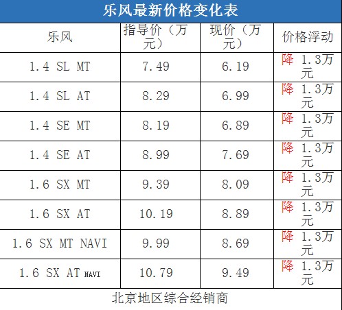 樂風SL車型與SE車型的差價為7000元,在配置上SE車型增加了車內(nèi)中控鎖、遙控鑰匙、后視鏡電動調(diào)節(jié)和音響揚聲器;作為一款主打性價比的小車而言,基本款的樂風就可以滿足一般家用消費者的需要。而樂風1.6L排量車型的定價在小型車中不論是從性能還是從配置上來說競爭力都不明顯。