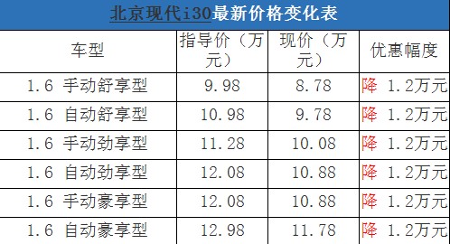 近日,編輯從北京地區(qū)北京現(xiàn)代4S經(jīng)銷商處了解到,現(xiàn)代i30有較為充足的現(xiàn)車銷售(紅色、銀色和灰色),可以滿足消費(fèi)者在春節(jié)前夕的購(gòu)車需求。目前在4S店中購(gòu)車可獲贈(zèng)價(jià)值1萬(wàn)元的裝潢禮包,經(jīng)銷商表示這個(gè)優(yōu)惠可以折現(xiàn),但具體金額需要消費(fèi)者到店詳談才能確定。相比之下,現(xiàn)代i30在綜合經(jīng)銷商處的優(yōu)惠幅度更加可觀,1.6L車型可以優(yōu)惠現(xiàn)金1.2萬(wàn)元。以下是現(xiàn)代i30最新價(jià)格變化表: