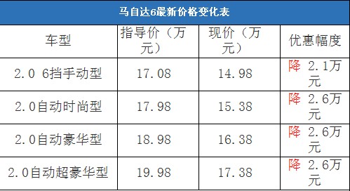 近日,編輯從北京地區(qū)某一汽馬自達(dá)4S經(jīng)銷商處了解到,馬自達(dá)6的現(xiàn)車充足,但是全系只能優(yōu)惠3000元,更多的優(yōu)惠需要消費(fèi)者到店詳談才能確定。相比之下,北京地區(qū)綜合經(jīng)銷商處的馬自達(dá)6自動(dòng)擋車型的現(xiàn)車比較充足,購車可以優(yōu)惠2.6萬元,手動(dòng)擋的現(xiàn)車較少,可以優(yōu)惠2.1萬元,降價(jià)幅度與去年末相比有了比較可觀的提升。不過據(jù)經(jīng)銷商透露,消費(fèi)者要想以這個(gè)價(jià)格提車,需要在店內(nèi)做購車一條龍服務(wù),其中車輛四項(xiàng)基本保險(xiǎn)可以打8.5折(約合4800-5300元左右)。以下是馬自達(dá)6最新價(jià)格變化表: