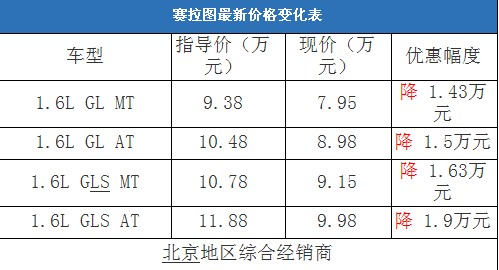 賽拉圖1.6GLS MT車型與1.6GL MT車型在配置方面增加了遙控鑰匙、電動(dòng)天窗、倒車?yán)走_(dá)、多功能顯示屏、真皮座椅、后視鏡加熱等,而1.4萬元的差價(jià)不如消費(fèi)者自行選裝這些配置合適。1.6GL MT車型與1.6 GL AT車型在指導(dǎo)價(jià)上相差1.1萬元,除了變速箱有所區(qū)別其他配置完全相同,而對(duì)于該車并不很先進(jìn)的4速自動(dòng)變速箱而言這樣的差價(jià)沒有太大優(yōu)勢。由以上兩點(diǎn)可以看出,消費(fèi)者如果想要購買賽拉圖,那么最低配的1.6L GL MT車型顯然是性價(jià)比最高的選擇。