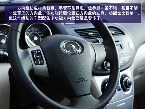 方向盤覆蓋仿皮材質(zhì),盡管不是真皮,但手感非常不錯,不夸張的說甚至不輸一些真皮的方向盤。多功能按鍵只設(shè)置在方向盤的左側(cè),功能也比較單一。但這個級別的車型配備多功能方向盤的有幾個,這樣看來凌傲真的是夠厚道了。