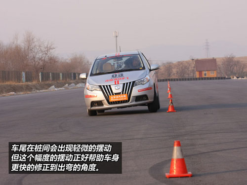穿樁測試環(huán)節(jié),凌傲的轉(zhuǎn)向非常準(zhǔn)確,四輪四角的設(shè)計(jì)讓它在樁間顯得異常靈活。由于這款車 不帶ESP功能,所以車尾在樁間會(huì)出現(xiàn)輕微的擺動(dòng),但這個(gè)幅度的擺動(dòng)正好幫助車身更快的修正到出彎的角度?梢哉f,凌傲在裝桶間具有較高的駕駛樂趣。