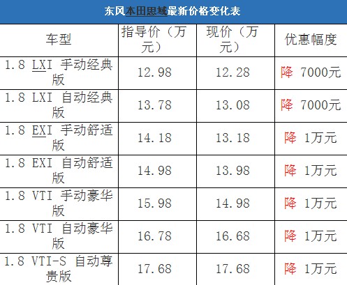 近日,編輯從北京地區(qū)東風(fēng)本田4S經(jīng)銷商處了解到,思域有少量水晶紫、水晶銀色現(xiàn)車,部分車型預(yù)定需要等待1個(gè)月左右就可以提車。據(jù)經(jīng)銷商透露,除了經(jīng)典版優(yōu)惠7000元外,其他車型均可以優(yōu)惠1萬(wàn)元現(xiàn)金,與去年末相比性價(jià)比有所提升。以下是思域最新價(jià)格變化表: