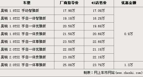 據(jù)北京斯柯達經(jīng)銷店銷售人員介紹,斯柯達昊銳共分為8個車型,售價區(qū)間為17.99-25.09萬元。目前店內(nèi)昊銳全系除了最高配的2.0T尊雅版以外其他車型均優(yōu)惠9000元,經(jīng)優(yōu)惠后,昊銳入門級售價降到了17.09萬元。最高配的2.0T尊雅版更是有1.3萬元的優(yōu)惠,售價從25.09萬元降到了23.79萬元。