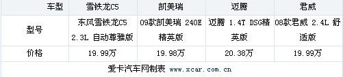 本次選取了4款車中售價約為20萬的4個車型進行橫向數(shù)據(jù)對比。通過對車身尺寸,動力配置,安全性及舒適性配置的數(shù)據(jù)對比為您選購愛車進行比較。因為此次我們選擇的是價格區(qū)間非常接近的4款車型,沒有考慮排量和高低配的因素,所以在各項配置方面各車型之間存在一定差距。