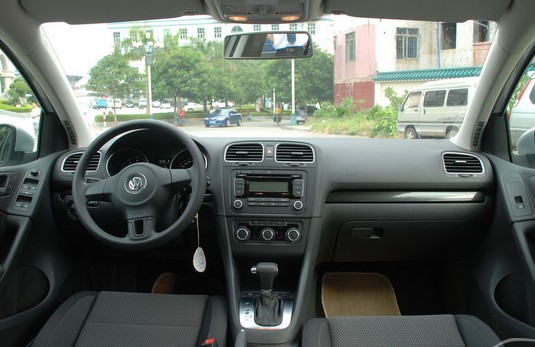 高爾夫的內(nèi)飾是經(jīng)典的雙色調(diào)配色,上面是耐臟的黑色,下面是舒適的米色。中控臺(tái)整體設(shè)計(jì)穩(wěn)重,自上而下分布著風(fēng)口、音響和空調(diào)功能區(qū)域,便于新車主習(xí)慣。當(dāng)然,少數(shù)幾處用上了金屬包邊,則能提升車廂質(zhì)感和檔次,也顯得更為精致。儀表盤是最經(jīng)典不過(guò)的雙環(huán)設(shè)計(jì),中間是行車信息顯示。機(jī)械風(fēng)格強(qiáng)烈,德國(guó)的機(jī)械設(shè)計(jì)合理性還需猜疑?做工方面,大眾一向是交足功課的廠家,即便是旗下最低端的POLO車型也不會(huì)讓人失望,何況這是重拳打造的高爾夫!當(dāng)然,質(zhì)感是一回事,高檔感又是另一回事。