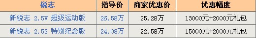 與皇冠共用底盤,發(fā)動機,同為6檔手自一體的變速箱,這是銳志最大的亮點。雖然較小的車內(nèi)空間一直讓人詬病,但對操控性的執(zhí)著依然得到不少車友的認(rèn)可,銷量與優(yōu)惠幅度都比較穩(wěn)定,現(xiàn)在主打的2.5S特別紀(jì)念版打出1.5萬元的現(xiàn)金優(yōu)惠,算是比較理想的價格,有興趣的朋友可以考慮出手。
