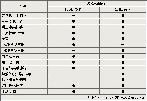 新推出的兩款車型保證了基本的舒適性及娛樂性,座椅高低調(diào)節(jié)及后排中央扶手提供了基本的配置。支持MP3/WMA的單碟CD音響方便了使用,兩款車只是在喇叭數(shù)量上有所區(qū)別。全車標配電動門窗,對于捷達較低的價格而言也算難能可貴。但方向盤上下調(diào)節(jié)、防紫外線/隔熱玻璃、后視鏡電動調(diào)節(jié)在伙伴上并沒有出現(xiàn)?梢钥闯,廠家對于這款經(jīng)濟型轎車的成本控制還是很嚴格的。