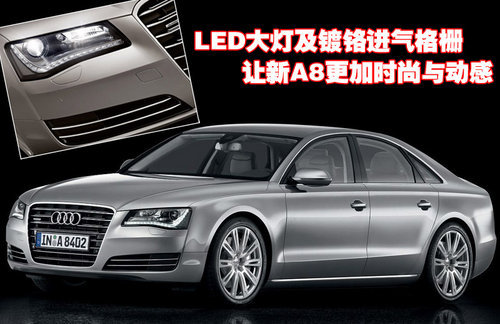 從奧迪新A8車型的前臉可以看出,LED自適應(yīng)前大燈、圓形前霧燈、獨(dú)立牌照支架以及鍍鉻進(jìn)氣格柵等升級(jí)讓其更加時(shí)尚與動(dòng)感。