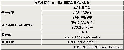 這次BMW在2010北京國際車展上,共將推出5款量產(chǎn)車型,其中包括3款汽車版車型,另外還將展示2款混合動力車型。這2款混合動力車型分別是高效混合動力X6與高效混合動力7系,它將傳統(tǒng)汽油機與高效電動機完美組合,達(dá)到低排放、高效能的作用。另外3款量產(chǎn)車型我們都比較熟悉,新3系雙門轎跑車、新3系敞篷轎跑車與5系長軸距版。如果說BMW混合動力車型只是為了展示未來技術(shù)及未來車型理念的話,那這3款汽油版車型著實離我們更近。
