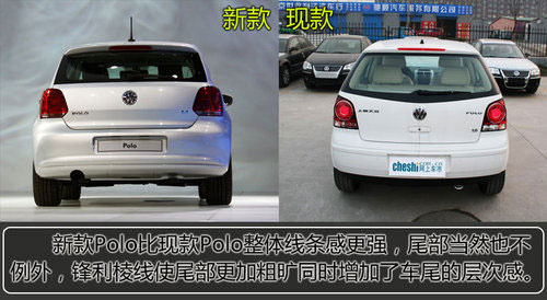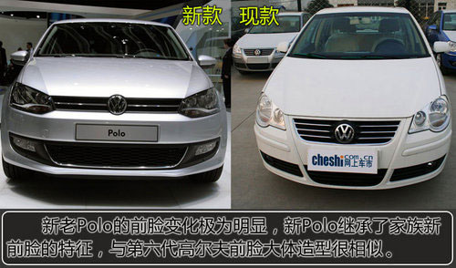 新老Polo的前臉變化極為明顯,新款Polo的前進氣格柵改成了與高爾夫6很相似的窄條形狀,大燈的造型仿佛是第六代高爾夫縱向拉伸版,微微上翹的保險杠配合上寬大的水箱冷卻進氣格柵給人一種壞笑的感覺,霧燈形狀也做了改進。