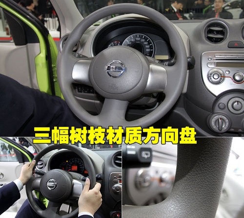 東風(fēng)日產(chǎn)瑪馳采用了三幅式方向盤,配以銀色的裝飾面板,整體感覺運(yùn)動(dòng)時(shí)尚。這款方向盤的包覆材料為樹脂材質(zhì),質(zhì)地較軟手握感覺比較舒適。局部做工方面,瑪馳方向盤的處理也比較精細(xì),沒(méi)有毛邊等瑕疵。