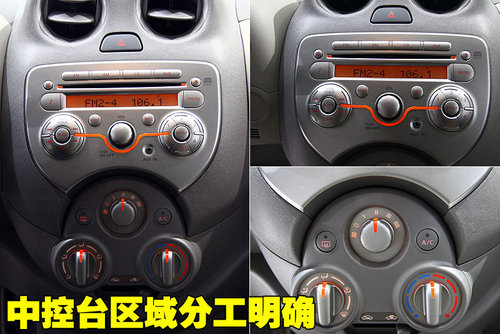 空調(diào)面板部分,東風(fēng)日產(chǎn)瑪馳的控制區(qū)域分工明確,操作比較簡(jiǎn)單,非常容易上手?刂茀^(qū)域分工明確,操作比較簡(jiǎn)單,而且時(shí)尚氣息很濃。