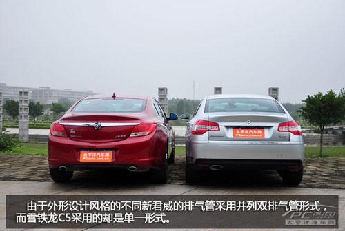 C5和新君威在外觀上的區(qū)別,就如同聊起法式浪漫的陶醉和美式運(yùn)動的活潑歡快一樣。當(dāng)把這兩輛車放在一起時,不用去看任何參數(shù)數(shù)據(jù),不用去想任何設(shè)計(jì)理念,你都能輕易的嗅出他們的不同。C5在造型上用了較大手筆的剪裁,被拉寬的尾部視覺,有沖擊力的前臉造型以及匍匐前進(jìn)的那條強(qiáng)有力的腰線都在C5長前懸+短后懸的比例中體現(xiàn)出來。