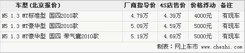 據(jù)天津一汽4S店銷(xiāo)售人員介紹,夏利N51.3L三款車(chē)型目前店內(nèi)均有現(xiàn)車(chē),并且有不同程度的大幅度降價(jià)優(yōu)惠活動(dòng),其中1.3L標(biāo)準(zhǔn)版車(chē)型購(gòu)車(chē)直降4000元,豪華版和豪華版帶氣囊兩款車(chē)型購(gòu)車(chē)直降5000元。全系車(chē)型有銀色、灰色、和藍(lán)色現(xiàn)車(chē)。