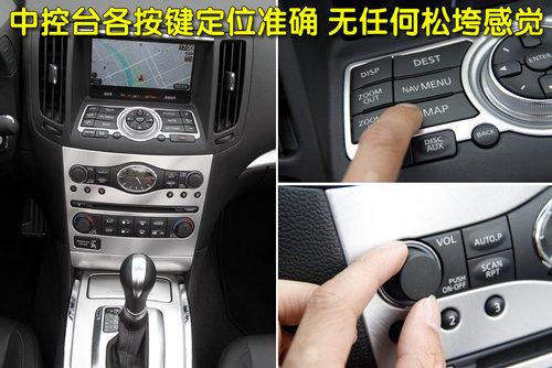 G37敞篷版內(nèi)飾沿襲了英菲尼迪品牌風格,VIS整合式信息系統(tǒng)、雙區(qū)恒溫空調(diào)、中文化衛(wèi)星導航等配備也一一齊全。各按鍵美觀度和實用性都非常不錯。音響、空調(diào)各按鍵定位準確,阻尼適中。