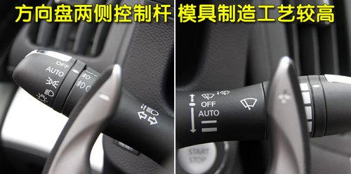 方向盤兩側(cè)的燈光、雨刷控制桿模具非常精細,做工細致,實際使用當中搬動及轉(zhuǎn)動兩側(cè)開關(guān)均無松垮的感覺。