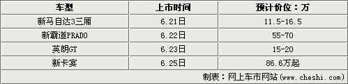 時(shí)間進(jìn)入到6月份以后,我國(guó)大部分城市都已經(jīng)進(jìn)入到了真正的夏天,伴隨著酷熱的天氣各大汽車(chē)廠商也紛紛選擇了盛夏時(shí)節(jié),發(fā)布他們的最新產(chǎn)品。據(jù)記者統(tǒng)計(jì),在6月份的第三周來(lái)自國(guó)產(chǎn)和進(jìn)口的各類(lèi)新車(chē)將有4款相繼上市。那么下面我們就來(lái)逐一點(diǎn)評(píng)一下下周即將上市的這些車(chē)型。