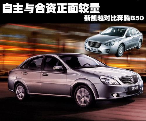 自主品牌在國內(nèi)市場的日子現(xiàn)在越來越風光,近幾年更是帶來了一股搶購國貨的熱潮,市場的整體局勢也從原來傾向合資的一邊倒,轉(zhuǎn)換成了兩股勢力分庭抗禮,在消費者心中的天平也日漸趨于平衡。緊湊級家用車是商家必定不能放過的一塊重要的蛋糕,自主與合資品牌的對抗也在這個范疇內(nèi)演化、升級。今天的對比合資品牌排除老牌勁旅——通用別克新凱越,自主品牌則是由奔騰品牌主打車型B50。