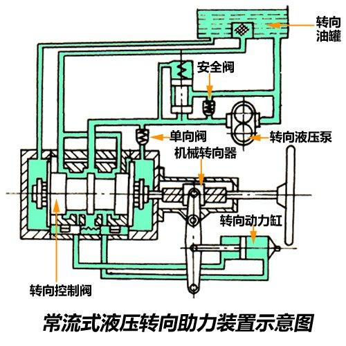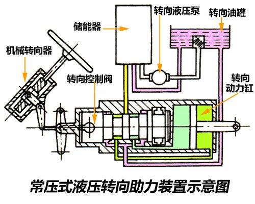 根據(jù)系統(tǒng)內(nèi)液流方式的不同可以分為常壓式液壓助力和常流式液壓助力。常壓式液壓助力系統(tǒng)的特點是無論方向盤處于正中位置還是轉(zhuǎn)向位置、方向盤保持靜止還是在轉(zhuǎn)動,系統(tǒng)管路中的油液總是保持高壓狀態(tài);而常流式液壓轉(zhuǎn)向助力系統(tǒng)的轉(zhuǎn)向油泵雖然始終工作,但液壓助力系統(tǒng)不工作時,油泵處于空轉(zhuǎn)狀態(tài),管路的負(fù)荷要比常壓式小,現(xiàn)在大多數(shù)液壓轉(zhuǎn)向助力系統(tǒng)都采用常流式?梢钥吹,不管哪種方式,轉(zhuǎn)向油泵都是必備部件,它可以將輸入的發(fā)動機機械能轉(zhuǎn)化為油液的壓力。