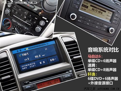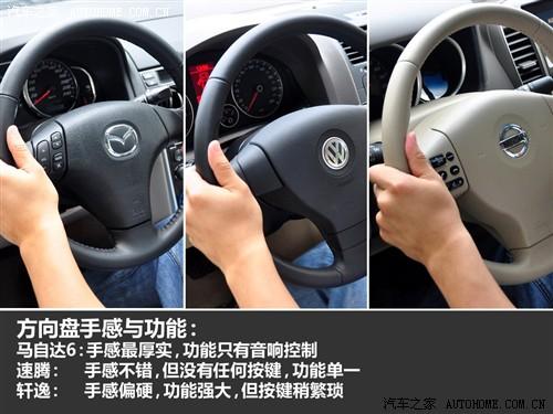 總的來說,作為頂配車型的軒逸具有的舒適性配置更高,特別是帶有倒車影像和DVD播放的中控臺(tái)彩色大屏顯得很有吸引力,而無匙啟動(dòng)也十分上檔次。速騰的配置也要比馬自達(dá)6更豐富一些,特別是安全配置一直是他的強(qiáng)項(xiàng),而尺寸更大、級(jí)別更高的馬自達(dá)6在這方面的確沒有優(yōu)勢(shì),不過話說回來,馬自達(dá)6的舒適性配置對(duì)于日常駕駛來說已經(jīng)完全足夠。