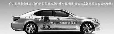 油價突破5元大關(guān),私家車車主不禁為“錢袋子”犯愁,不少車主也紛紛想盡各種辦法降低油耗或?qū)ふ摇伴T路”賺“外快”貼補養(yǎng)車費用。最近車主小高就從朋友那里發(fā)現(xiàn)一個新穎的賺錢方式,“只要把車身‘借’給商家打打廣告,車輛完全不會受到損壞,每個月還能賺到三百來塊的油錢,一年算下來就有3000多元的收入”。這讓貸款買車的小高很心動,小高算了一下,3000多元的收入基本上相當(dāng)于一年保險費用,“這樣也挺好,多多少少能減輕一點養(yǎng)車負(fù)擔(dān)”。