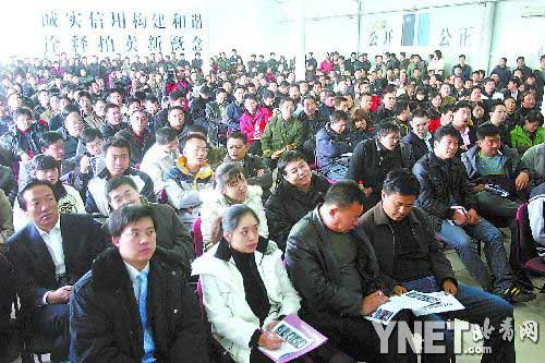 現(xiàn)場(chǎng)拍賣的82輛二手車,絕大多數(shù)是海淀法院近來查扣的“老賴車”。82輛被拍車輛絕大部分都在現(xiàn)場(chǎng)展示,所以昨天中午時(shí)分,拍賣場(chǎng)外的展示區(qū)已經(jīng)是人頭攢動(dòng),不少貼有標(biāo)志的被拍車輛周圍都聚集了不少買車人在對(duì)車輛指指點(diǎn)點(diǎn)、評(píng)頭論足。12時(shí)50分許,擺放有300余個(gè)座椅的拍賣場(chǎng)座無虛席。很快,不僅所有座椅全部滿員,會(huì)場(chǎng)兩側(cè)和后面空地也站滿了人。