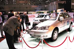 在今年的日內(nèi)瓦車展,比亞迪展出F3DM雙;旌蟿恿嚻拭孳嚒