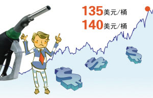 自去年8月美國次貸危機(jī)全面爆發(fā)以來,受美元走軟的影響,國際油價(jià)就從當(dāng)時(shí)的80美元左右一路漲至上周五的135美元,最高還曾創(chuàng)下近140美元的歷史紀(jì)錄。石油不僅是國民經(jīng)濟(jì)發(fā)展急需“液體黃金”,也與老百姓生活息息相關(guān)。盡管國際油價(jià)在節(jié)節(jié)上漲,但目前國內(nèi)成品油價(jià)格受政府管制還“隔岸觀火”——處在國際油價(jià)70美元左右的水平,國內(nèi)企業(yè)、老百姓在政府的保護(hù)下,免遭高油價(jià)之苦。上周公布的國內(nèi)5月份CPI盡管達(dá)到7.7%,遠(yuǎn)高于今年中央制定的4.8%的通貨膨脹目標(biāo),如果國內(nèi)成品油價(jià)格跟國際接軌,CPI數(shù)據(jù)肯定還要高很多。但是不斷沖高的國際油價(jià)對(duì)中國能源價(jià)格改革帶來了巨大壓力。發(fā)改委負(fù)責(zé)人6月8日曾表示,中國將暫緩成品油改革以“穩(wěn)定社會(huì)經(jīng)濟(jì)”。但6月11日官方公布的數(shù)據(jù)卻表明,煤價(jià)和油價(jià)的上漲是推動(dòng)5月份生產(chǎn)價(jià)格指數(shù)(PPI)創(chuàng)新高的主要?jiǎng)恿χ唬鳳PI的上漲最終還是會(huì)傳導(dǎo)至CPI上。