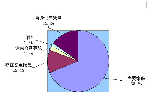 統(tǒng)計還顯示,本季度由于汽車質(zhì)量問題引發(fā)的投訴中,涉及安全隱患以及生產(chǎn)缺陷的投訴較以往增加。對于重大零部件(如:發(fā)動機、變速箱等)的質(zhì)量問題,車主提出退車、換車、更換整個部件或者延長配件的質(zhì)保期或者整車質(zhì)保期的要求有所增加。其中,購買半年的新車重要部件出現(xiàn)質(zhì)量問題,是引發(fā)換車、退車的根本原因。