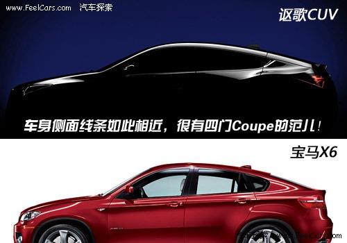 它正是前一陣才剛剛曝光的全新謳歌CUV(Car-Based Utility Vehicle),從字面上看也是一款Crossover車型。與之前披露的諜照或合成圖相比,此次曝光的官方圖赤裸裸的向?qū)汃RX6發(fā)起了挑釁。從車身整體的造型來看,這款尚沒有定名的新車完全如X6一般有著四門Coupe轎跑車的影子;同時(shí),在細(xì)節(jié)之處也進(jìn)一步深化這種概念,它有隱藏式的后門把手(意大利轎跑慣用設(shè)計(jì))、異常凸出的前后輪拱以及同TL一般的尖銳尾燈造型等。