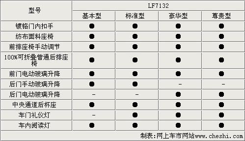 內(nèi)飾方面,力帆320都采用針織布料座椅、前排座椅都采用手動(dòng)調(diào)節(jié)、后排座椅也可以整排放倒。全系車型的前門玻璃都采用電動(dòng)升降器,低配車型的后門玻璃采用手動(dòng)升降。另外,后排還配備了杯座,使后排乘客更加便捷。