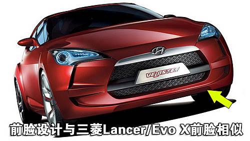 現(xiàn)代Veloster coupe概念采用的是現(xiàn)代Theta 2.0升直列四缸發(fā)動機(jī),通過五前速自動變速箱將動力傳遞到前輪。雙車門設(shè)計(jì),前臉設(shè)計(jì)讓我們想起了最新的三菱Lancer/Evo X前臉。