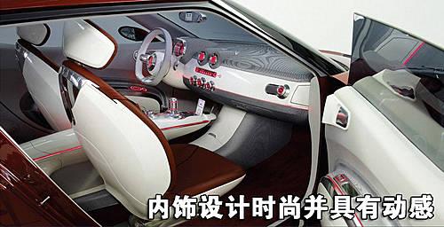 現(xiàn)代Veloster coupe概念車最大的特點(diǎn)便是采用了大面積玻璃車頂,內(nèi)廂為明亮的紅色配白色,再用高亮度金屬點(diǎn)綴,具有韓國式的現(xiàn)代感。中控臺上的音響系統(tǒng)可以連接蘋果iPod,短小的變速擋桿旁邊是發(fā)動機(jī)啟動按鈕。