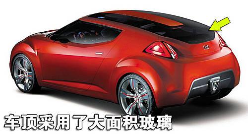 現(xiàn)代Veloster coupe概念車是由現(xiàn)代設(shè)計(jì)與研發(fā)中心研發(fā)的第三代概念車,車名Veloster是velocity速度和Rodster跑車之意,將出現(xiàn)在本屆法蘭克福車展上。該車長寬高分別為4.1米、1.79米和1.45米,軸距2.6米。