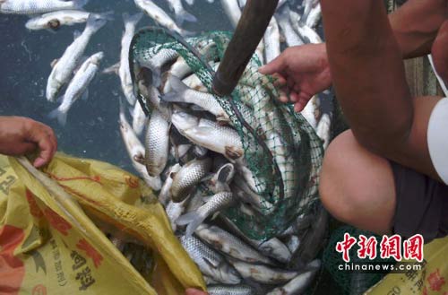 據(jù)此前官方媒體報(bào)道,截至12日上午,汀江流域和位于永定縣境內(nèi)的棉花灘庫(kù)區(qū)出現(xiàn)了大面積的死魚和魚中毒浮起現(xiàn)象,據(jù)初步統(tǒng)計(jì),僅棉花灘庫(kù)區(qū)死魚和魚中毒就達(dá)378萬(wàn)斤之多。
