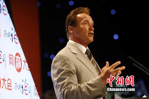 阿諾德•施瓦辛格在演講中稱自己為樂觀主義者,“樂觀者總是在危機中看到的機會。”施瓦辛格說,從現(xiàn)場的中小企業(yè)網(wǎng)商眼中,他看到了信心,沒有看到絕望。