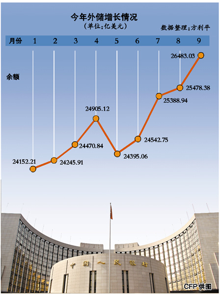 數(shù)據(jù)顯示,9月末,國(guó)家外匯儲(chǔ)備余額為26483億美元,第三季度,外匯儲(chǔ)備新增1840.25億美元,增長(zhǎng)規(guī)模創(chuàng)下季度新高,規(guī)模達(dá)到整個(gè)上半年的3.3倍。7、8、9月新增外匯儲(chǔ)備分別達(dá)846.19億、89.44億和1004.65億美元,其中7月和9月,分別創(chuàng)下單月歷史最高和次高水平。