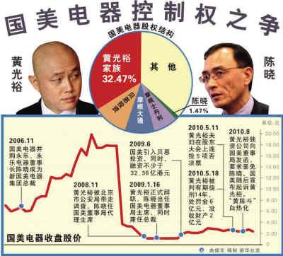 黃光裕家族人士稱,從一開(kāi)始我們就表明了態(tài)度,現(xiàn)在是否分拆非上市門店的主動(dòng)權(quán)并不在大股東方面,是陳曉造成的國(guó)美分裂。