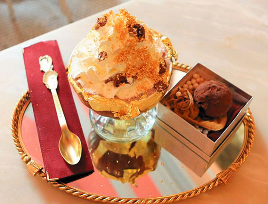 這家店出售的奢侈甜品非同一般,它們的價(jià)格已打破最貴甜品的世界紀(jì)錄。包括價(jià)格約合17萬元人民幣的“頂級(jí)金箔巧克力布丁”和價(jià)格約合6800元人民幣的“英格蘭黃金圣代冰激凌”。這兩樣甜點(diǎn)已打破吉尼斯世界記錄,成為全球最昂貴的甜品。