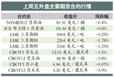 紐約商業(yè)期貨交易所(NYMEX)的原油期貨略跌0.4%,收報81.51美元/桶;倫敦金屬交易所(LME)的有色金屬也大多收跌,但銅、鋁、鋅三個品種的跌幅都在2%以內(nèi)。