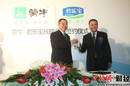 中新網(wǎng)11月22日電 蒙牛乳業(yè)集團(tuán)和君樂寶乳業(yè)22日在北京聯(lián)合召開戰(zhàn)略合作新聞發(fā)布會,蒙牛將投資4.692億元持有君樂寶乳業(yè)51%股權(quán),成為君樂寶的最大股東。此次合作將成為中國乳業(yè)近兩年來影響最大的一次合作,預(yù)示著中國乳業(yè)聯(lián)合、重組、兼并收購“浪潮”的來臨。
