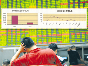從2008年1月1日至今,上證綜指從高點(diǎn)5522點(diǎn)跌至12月12日的1954點(diǎn),下跌幅度超過(guò)60%。市場(chǎng)深幅調(diào)整不僅使投資者“巨虧”,同時(shí)也讓IPO規(guī)模大幅縮水。