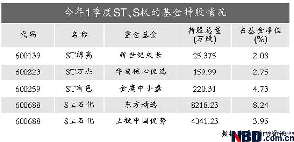 不過,除了S上石化之外,上述S股和ST股均沒有進入基金十大重倉股之列。